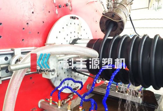 Because PE double-wall bellows are mostly of large caliber specifications and have many raw materials for extrusion molding, twin-screw extruders (parallel or conical twin-screw extruders can be used in general manufacturers), the forming process of PE double-wall bellows mainly passes through three technological processes: tube molding, tube cutting and flaring, as follows