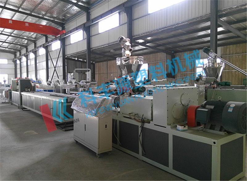 PVC異型材設(shè)備是生產(chǎn)PVC塑料異型材的專(zhuān)業(yè)生產(chǎn)設(shè)備,主要生產(chǎn)門(mén)窗系列異型材、板材、片材、微發(fā)泡異型材、微發(fā)泡裝飾板材。我公司引進(jìn)吸收國(guó)外技術(shù)而研制的大型塑料門(mén)窗異型材生產(chǎn)線,配套以錐形雙螺桿擠出機(jī),具有自動(dòng)化程度高,工作性能平穩(wěn),產(chǎn)量大,效率高等優(yōu)點(diǎn)。