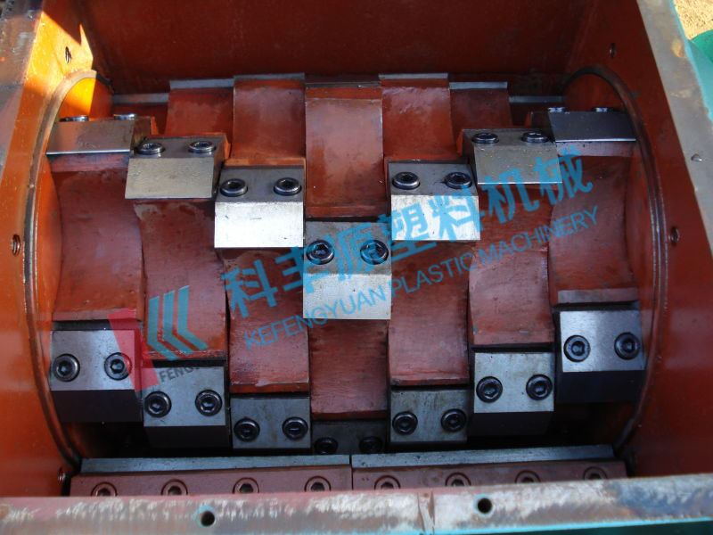 塑料破碎機通過電動機帶動動刀刀架做高速旋轉(zhuǎn),在動刀高速轉(zhuǎn)動的過程中與定刀形成相對運動的剪切趨勢,利用動刀與定刀之間形成的剪切從而對大塊塑料進行破碎、粉碎,破碎后形成10-20mm大小的塑料片,通過篩網(wǎng)對塑料顆粒大小進行過濾輸出。